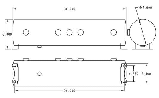 Air Lift 4 Gal Alum Tank - (2) 1/4in (2) 3/8in End & 1/4in Drain - 30in L X 6in D - Polished