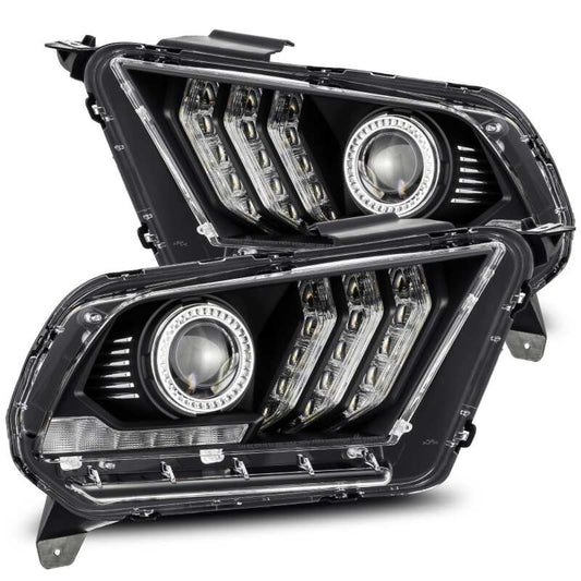 AlphaRex 10-12 Ford Mustang LUXX LED Proj Headlights Plank Style Black w/Activ Light/Seq Signal