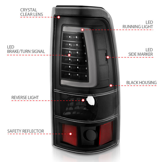 ANZO 1999-2002 Chevy Silverado 1500 LED Taillights Plank Style Black w/Clear Lens