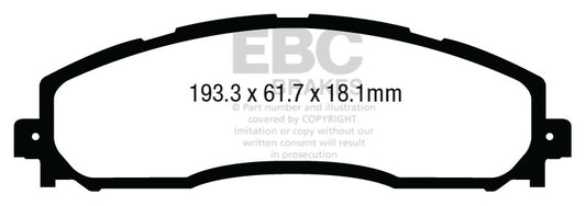 EBC 15+ Ford F150 2.7 Twin Turbo (2WD) Extra Duty Front Brake Pads