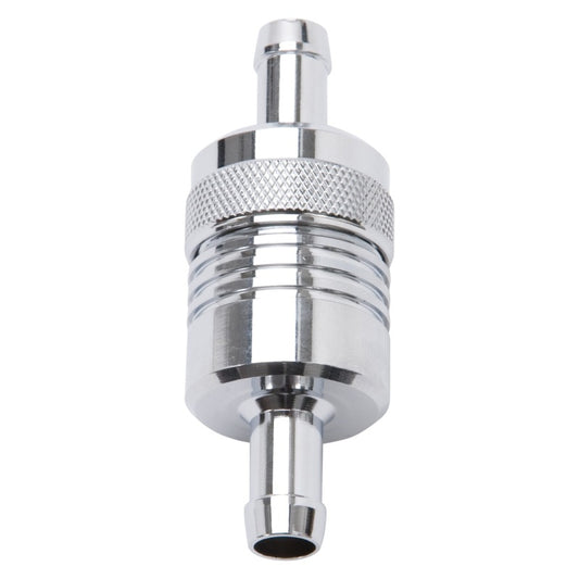 Edelbrock Fuel Filter Aluminum 3In X 01/ 1/8In 3/8In Inlet/Outlet Chrome