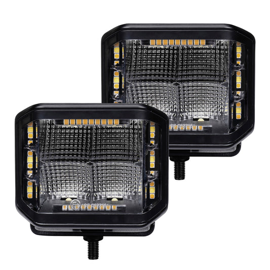 Go Rhino Xplor Blackout Combo Series Cube Sideline LED Flood Lights w/Amber 4x3 - Blk (Pair)