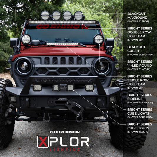 Go Rhino Xplor Bright Series Cube LED Spot Light Kit (Surface/Threaded Stud Mount) 3x3 - Blk (Pair)