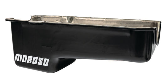 Moroso Pre-80 Chevrolet Small Block (w/Driver Side Dipstick) Wet Sump 7qt 9.5in Steel Oil Pan - Blk
