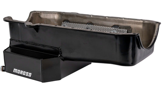 Moroso 86-Up Chevrolet Small Block (w/1 Pc Seal) Road Race Wet Sump 7qt 7.5in Steel Oil Pan - Black