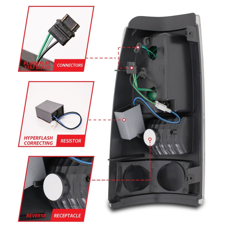 Tail Light Assembly, LED, Red/Clear Lens, Pair, . Guaranteed To Improve Your Vehicles Appearance. Rigorously Tested For Fit And Function. Simple Plug And Play. No Modifications Required. Easy Installation Using Common Hand Tools. Uses Stock Mounting Locations And Hardware. D.O.T. Compliant To S.A.E. Standards. Sold As A Pair. Does Not Fit 3500 Series Or Stepside Models.