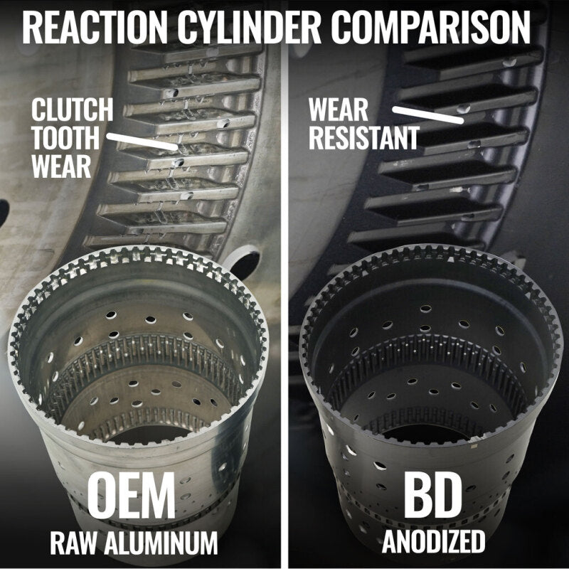 Engineered for enhanced reliability and extended service life, the BD 10R80 RoadMaster Transmission is the ideal upgrade for stock or mildly modified vehicles. It addresses common 10R80 weaknesses with durable solutions -- most notably, the notorious CDF Drum leak is fixed by introducing a retaining feature that supports the internal bushing, preventing it from shifting and blocking fluid pathways. For sharp shifts and lasting performance, each transmission features an anodized reaction shell to eliminate embedded clutch tooth wear issues and a new OEM valve body, modified to improve solenoid retention and increase line pressure by 30%, delivering noticeably higher clutch holding power. Included in every package is BD'(TM)s ProForce 10R80 Torque Converter and a high-capacity Deep Sump Pan. The added fluid volume from the deep sump design helps keep the new OEM clutches and steels cooler, promoting longer-lasting performance compared to stock setups.