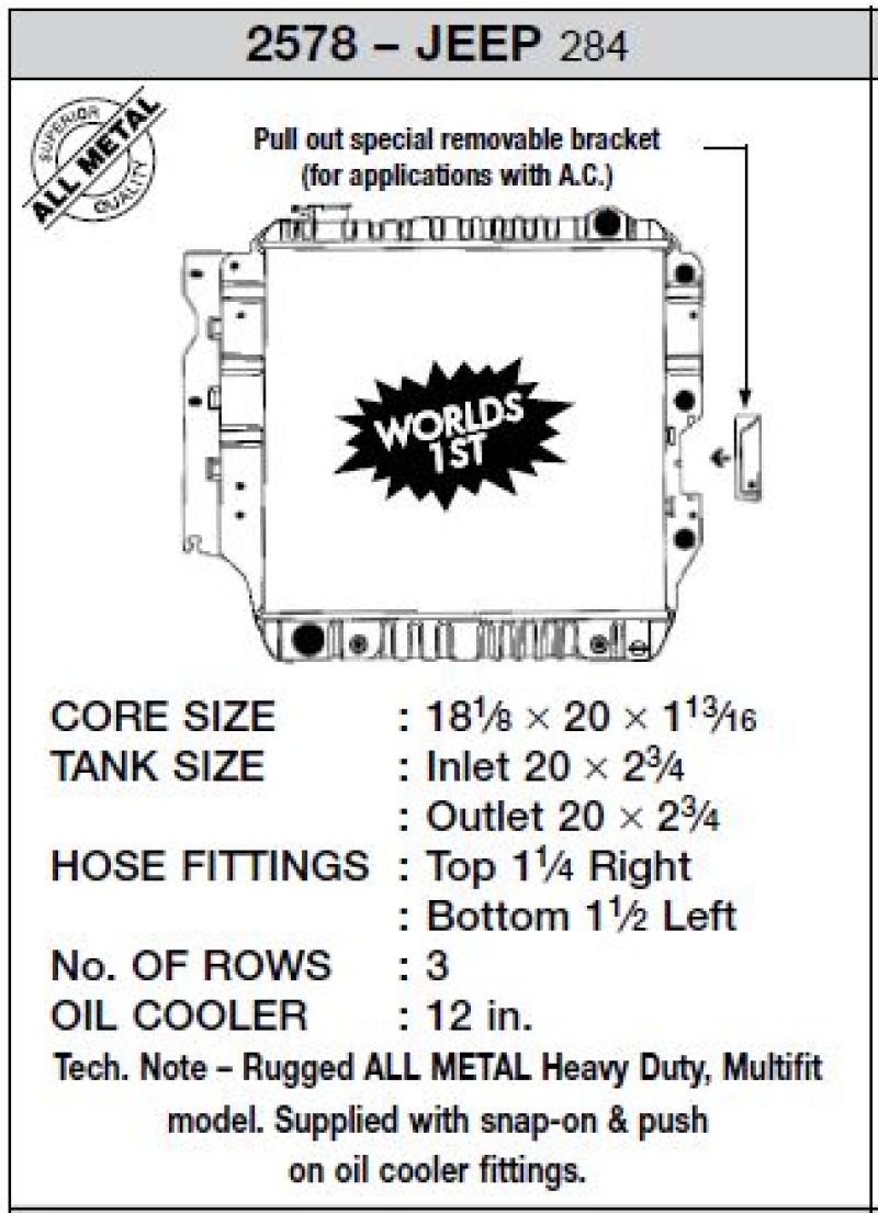 Get it all from CSF! With over 3000 models to chose from, CSF's coverage is second to none.When you choose CSF, you are dealing directly with the manufacturer, not a broker or an importer. CSF's factories are ISO certified, and are OE suppliers to many US, German and Asian manufacturers. When you purchase a CSF product, you can be rest assured that it has been manufactured on the same production lines with the same high quality standards as their OE customers. Every single radiator is subject to rigorous testing procedures such as Hydrostatic Testing, Vacuum decaying and life cycle testing, and is designed to always be a "drop-in fit".