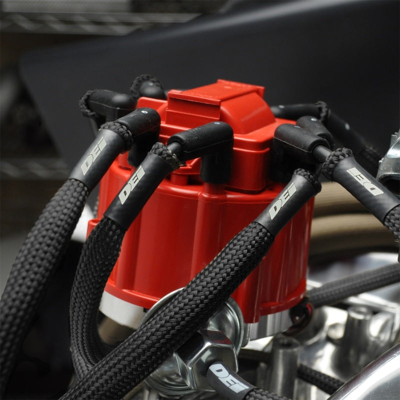 Black Titanium(TM) Protect-A-Sleeve solves the problem of burning, cracking plug wires, lines & hoses from engine & exhaust heat, now in a stylish black finish. DEI's Black Titanium Protect-A-Sleeve with LR Technology(TM) offers the best possible line sleeve protection on the market. Developed specifically for any application where extreme high heat is present, these Titanium sleeves will protect wires, lines and cables when exposed up to 1800F direct heat/2500F radiant. Developed with DEI's proprietary LR Technology, these high temperature rated sleeves provide superior thermal protection for street vehicles or race engines, protecting fuel, oil lines, spark plug and electrical wires from direct or under hood radiant heat. Water and heat resistant, they are also ideal for Powersports ATV/UTV, motorcycle, personal watercraft, snowmobiles, and marine use.