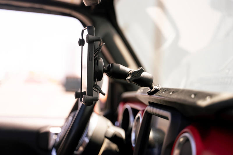 Our Jeep Wrangler & Gladiator Dash Mount provides options for mounting multiple digital devices to your dash, keeping them at arm?s length. This versatile solution is perfect for mounting multiple devices at once, such as your phone, tablet, GPS, radio/mic, and more. The M5 Pem Nut mounting points are compatible with RAM Mounts Diamond Base Holders, as well as other brands. Three mounting slots that use ?-inch carriage bolts allow for additional mounting options. Installation is a simple bolt-on process, with no drilling required!