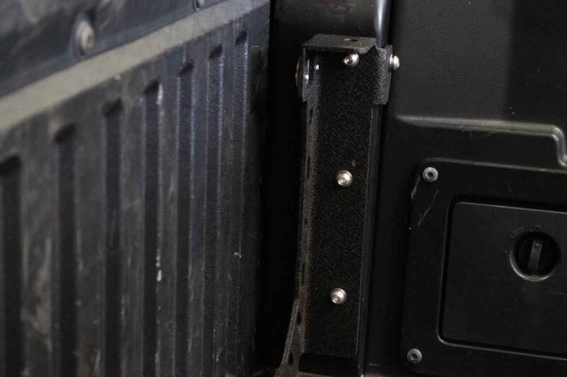 Enhance your Toyota Tacoma's utility with this black textured powder-coated panel. It attaches easily with stainless steel hardware, providing convenient attachment points for ratchet straps, bungee cords, MOLLE nets, and more. Requires drilling but installs clear of the tailgate path for maximum functionality. Fits 2005-Current Toyota Tacoma models.