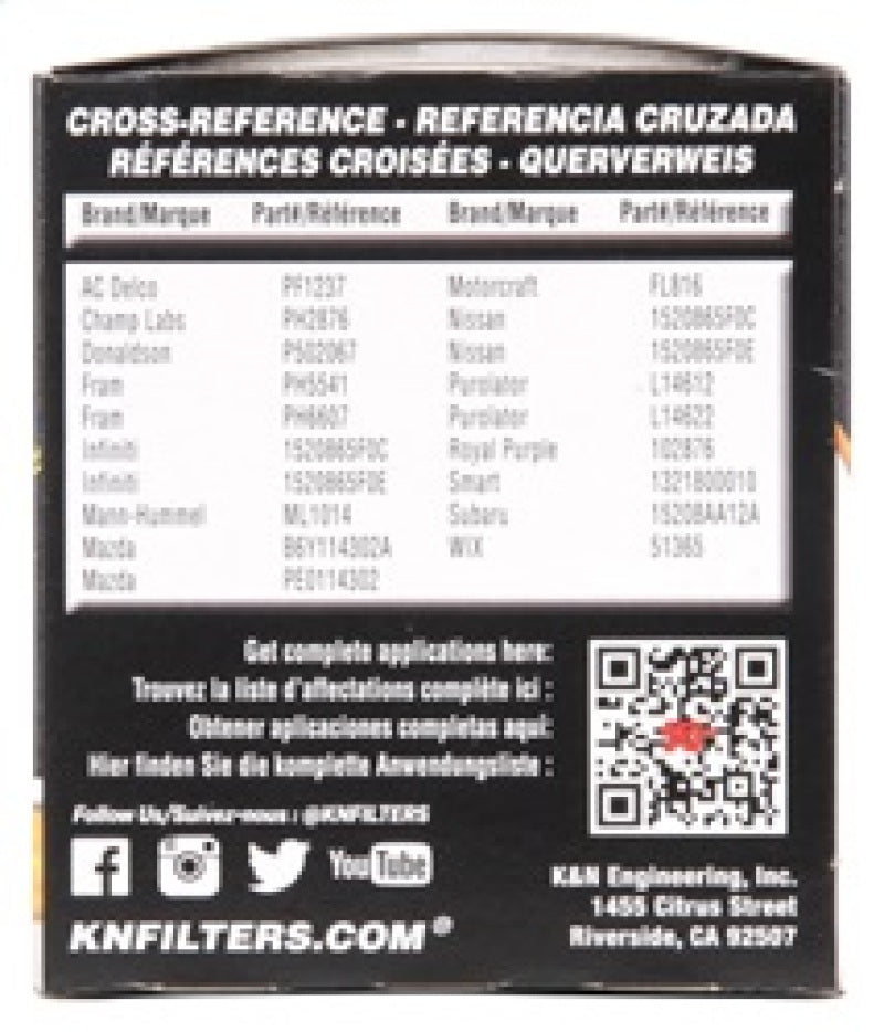 Originally developed for demanding race applications, K&N's Premium Wrench-Off Oil Filter has become a favorite among consumers for its durability and easy removal. Most of our automotive and marine oil filters come with a 1 inch nut welded to the top of the canister so they can be easily wrenched-off with a standard tool. To satisfy the demands of racers, our oil filter has many features over and above the requirements of most vehicles. We use thicker canister walls for extra strength and durability which reduces the risk of damage from loose rocks and debris. The drilled hole on the nut provides for safety wire attachment. Our oil filters also use a resin impregnated cellulose filter media. This allows for higher flow rates while providing outstanding filtration.