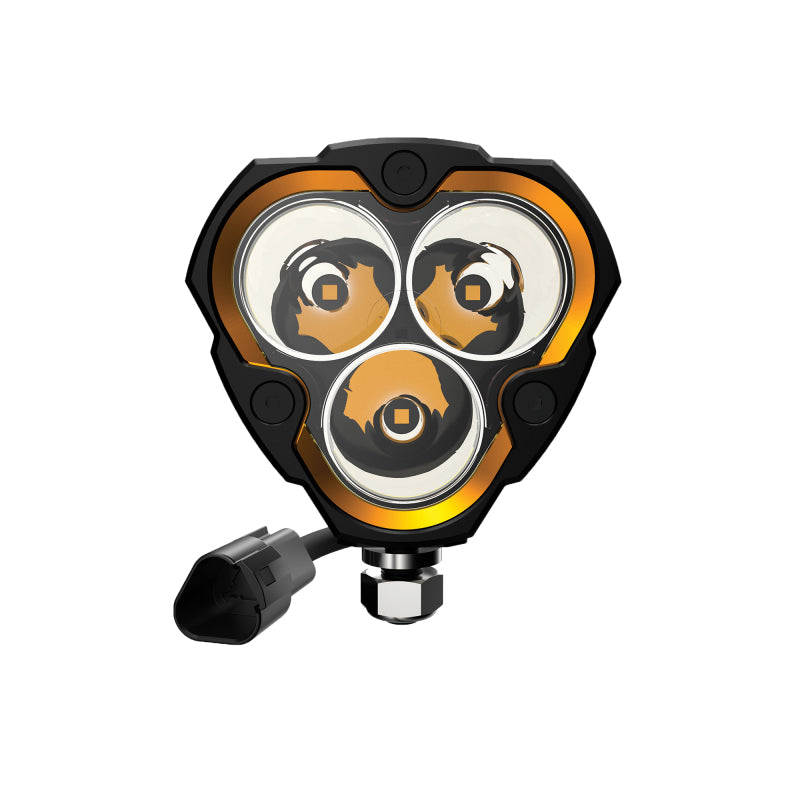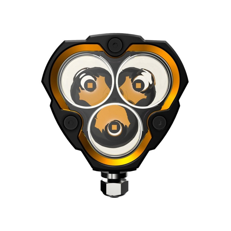 The small and mighty KC FLEX ERA 3 features an optimized compact triangular design with best in class light output. Designed for flexibility, you can change beam patterns and style easily with swappable lens optics, bezels, and covers. Ushering in a new ERA in off-road lighting, the FLEX ERA 3 was born to race Baja and is a perfect complement on your next adventure. Signature triangular design provides maximum output with 3 high powered LEDs in a compact space, as compact as 2 LEDs and stronger than 4 in the same space. Changing the game, KC reinvents the traditional with an allnew form factor featuring amber backlighting. IP68 water and dust protection with a redesigned industryleading multislide Die-Cast construction. With interchangeable lens optics, bezel colors, and covers, the flexibility abounds with this new series of lights. High powered lights with precision designed optics make for a highly focused spot pattern light.