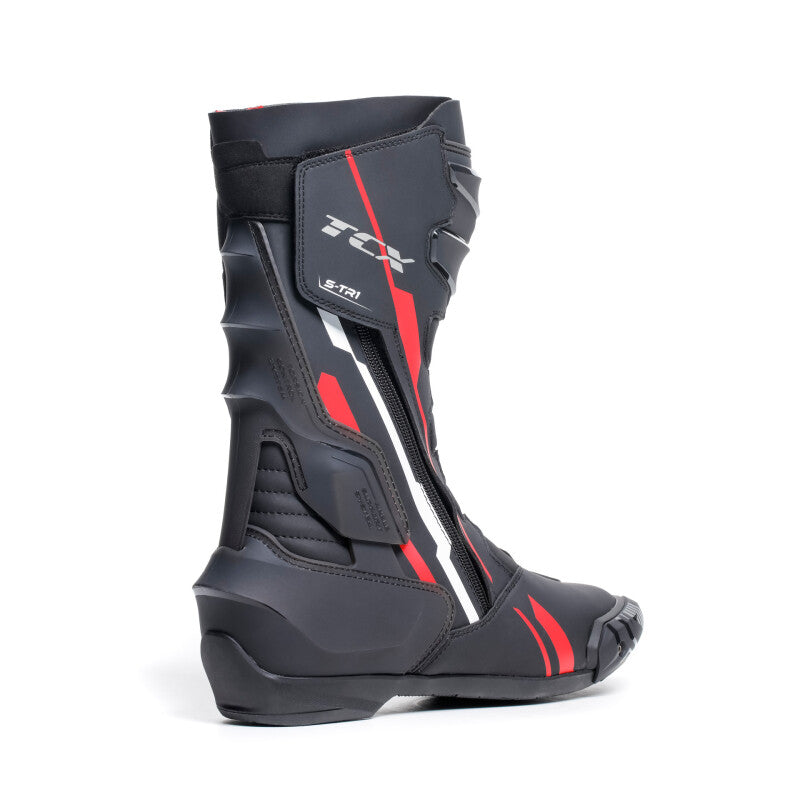 Blending TCX's high-quality standards and maximum protection, S-TR1 Air are the new sports boots designed to protect foot, joint and shin - the perfect balance between safety and comfort. Ventilation is optimized by the perforated upper and the front joint in breathable mesh fabric with integrated hot-melt bands - for optimal comfort even at high temperatures. Front protection is guaranteed by the upper construction in rigid TPU structure and lower soft padding - an innovative and functional design for padded shin protection resulting in boots boasting excellent flexibility. The TCS® (Torsion Control System) - specially designed to accompany the ankle as it moves through its optimal range of action - guides the movement of the foot joint, thus avoiding the risk of unwelcome twisting, hyper-extension and hyperflexion. The Groundtrax® sole boasts a specially designed tread that ensures perfect grip on the motorcycle's controls as well as on asphalt, in all weather conditions.